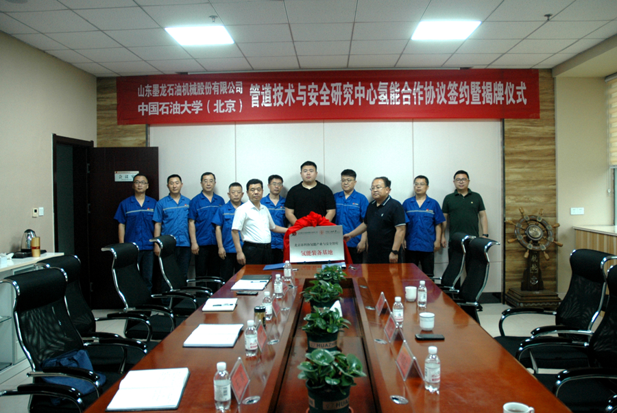 2024年7月4日上午,山東墨龍與中國石油大學(xué)(北京)舉行氫能合作協(xié)議簽約暨合作項(xiàng)目揭牌儀式。山東墨龍董事長韓高貴、中國石油大學(xué)(北京)管道技術(shù)與安全研究中心主任董紹華教授出席簽約儀式,並為合作項(xiàng)目氫能裝備基地、油氣管研發(fā)基地揭牌。